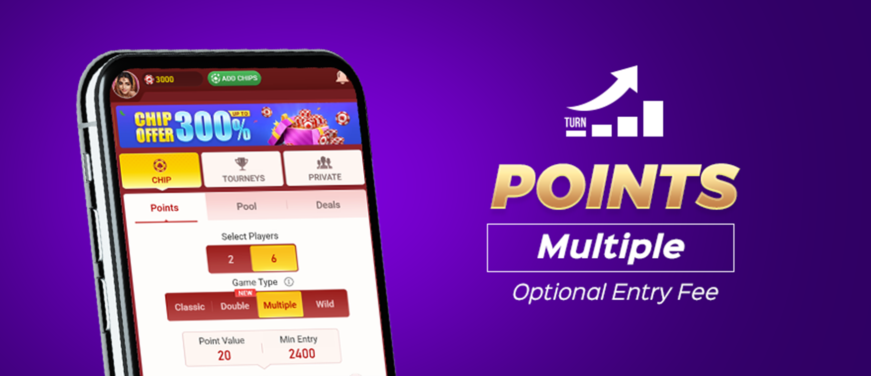Points - Multiple is a thrilling twist on the classic Points Rummy, uniquely designed by Yes Rummy.
