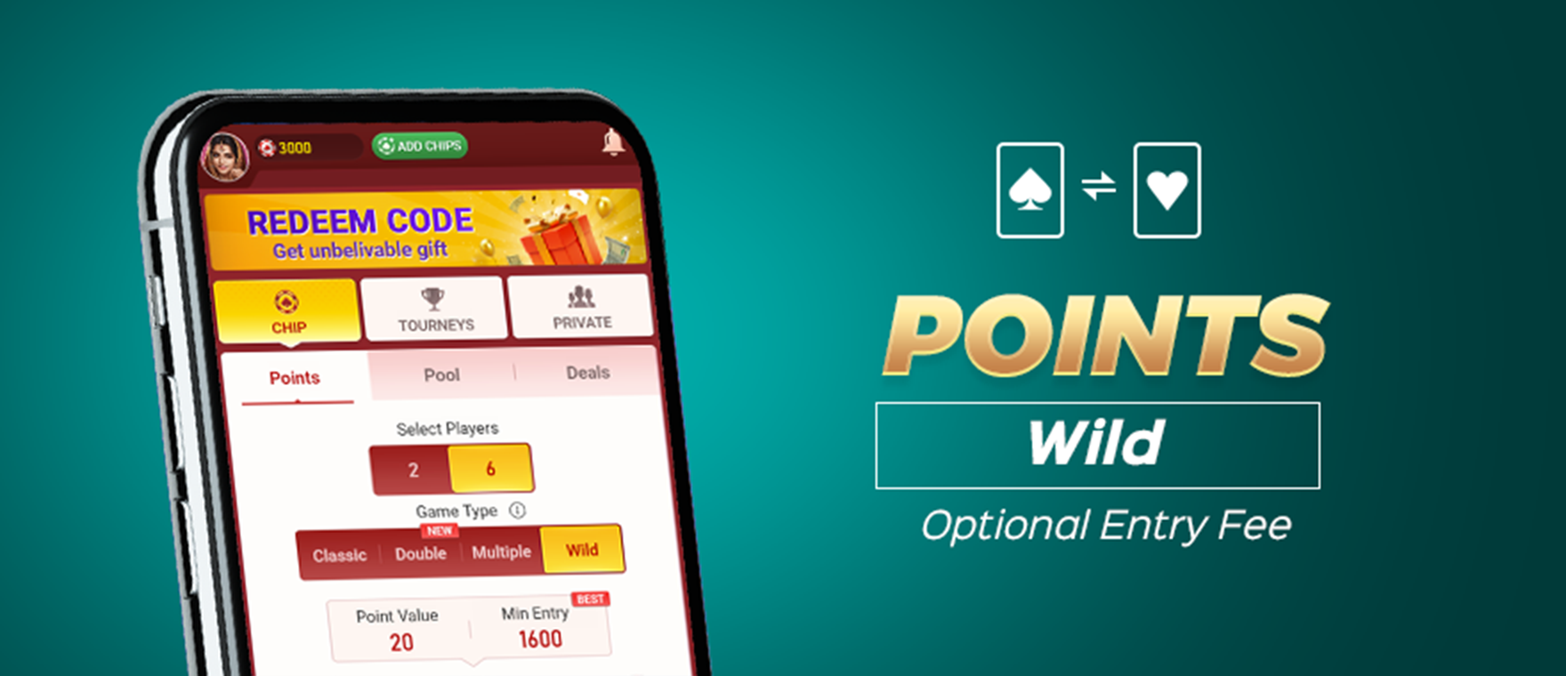 Points - Wild is an exclusive Yes Rummy original — a bold evolution of classic Points Rummy with a wild twist!